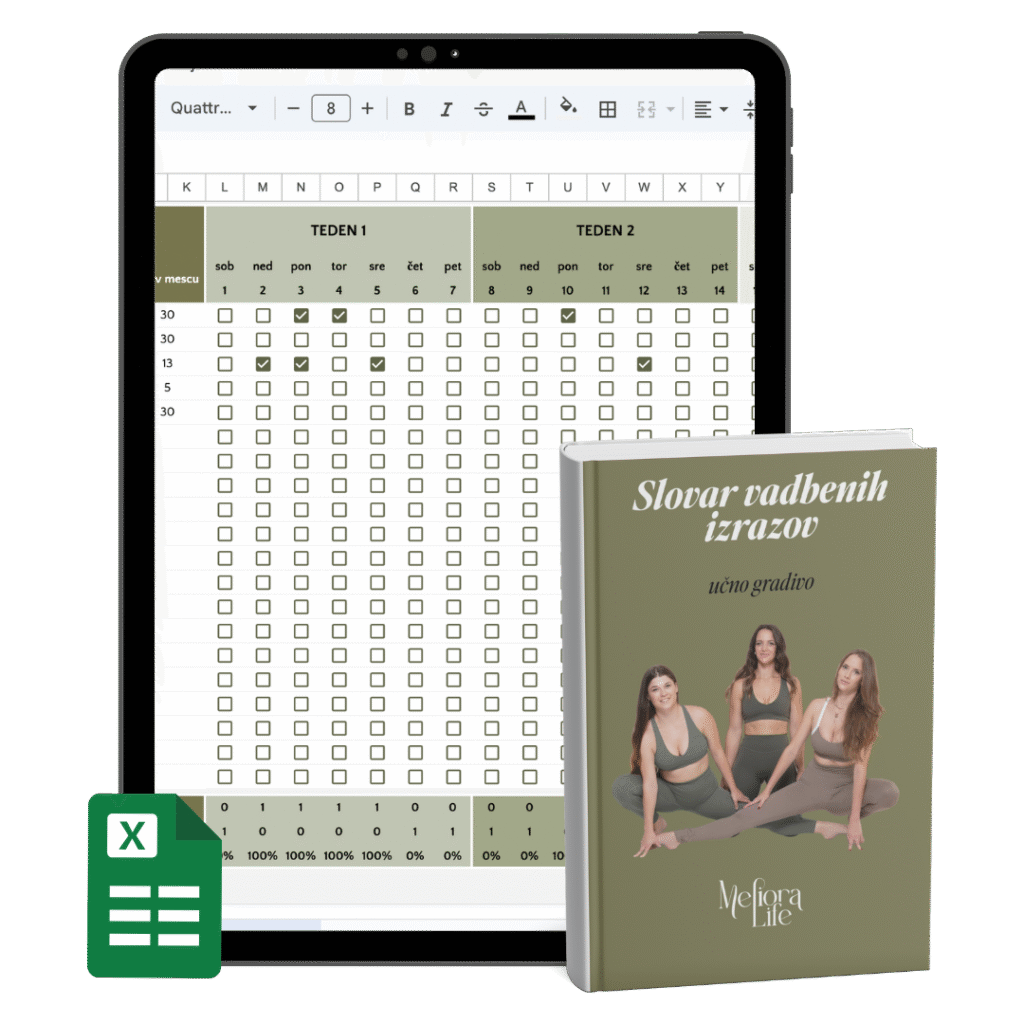 Udeleženke boste po vsakem srečanju prejele povzetke predavanj ter tabelo za spremljanje napredka, ki vam bo v pomoč . Tabelo bomo skupaj tudi podrobno razložile in vas jo naučile uporabljati, da boste same znale spremljati svoj napredek ter sprejemati smiselne odločitve glede prehrane in treninga.