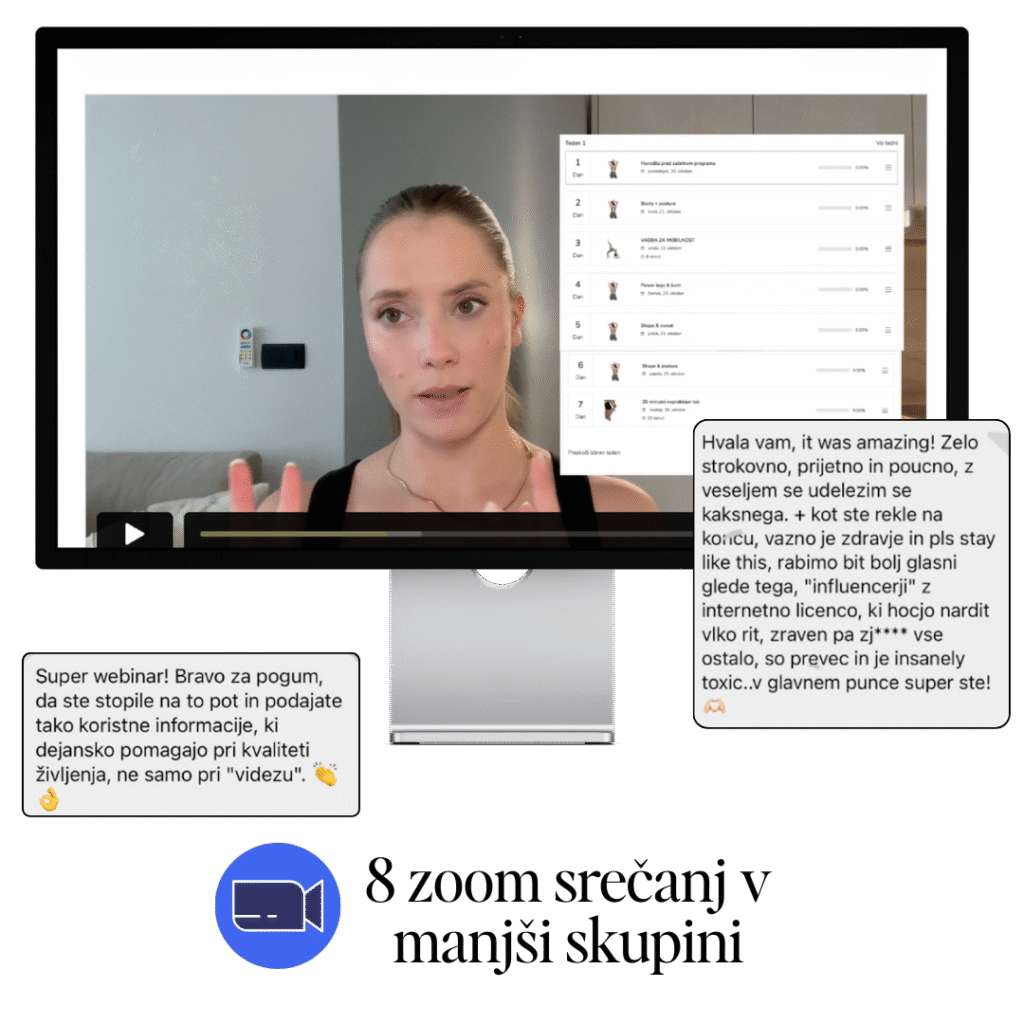 Po 2 mesecih boš imela znanje, strukturo in samozavest za pravilno vadbo za moč. Razumela boš, kako s treningom in prehrano podpreti zdravje ter zgraditi lepo, fit postavo – brez poškodb, brez izčrpavanja in brez ekstremov.