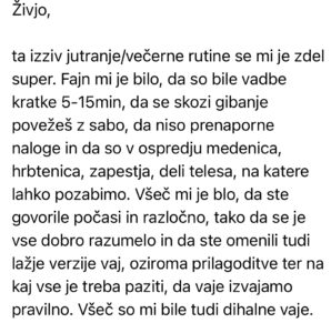 Nisem verjela, da me lahko 8 minut na dan tako spremeni. Bolj čutim svoje telo, bolečin v hrbtenici ni več.