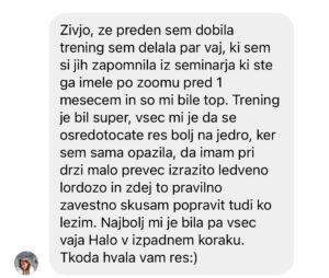 Po dveh tednih sem opazila, da me manj boli križ pri sedenju. Po štirih sem že avtomatsko stala bolj pokončno.